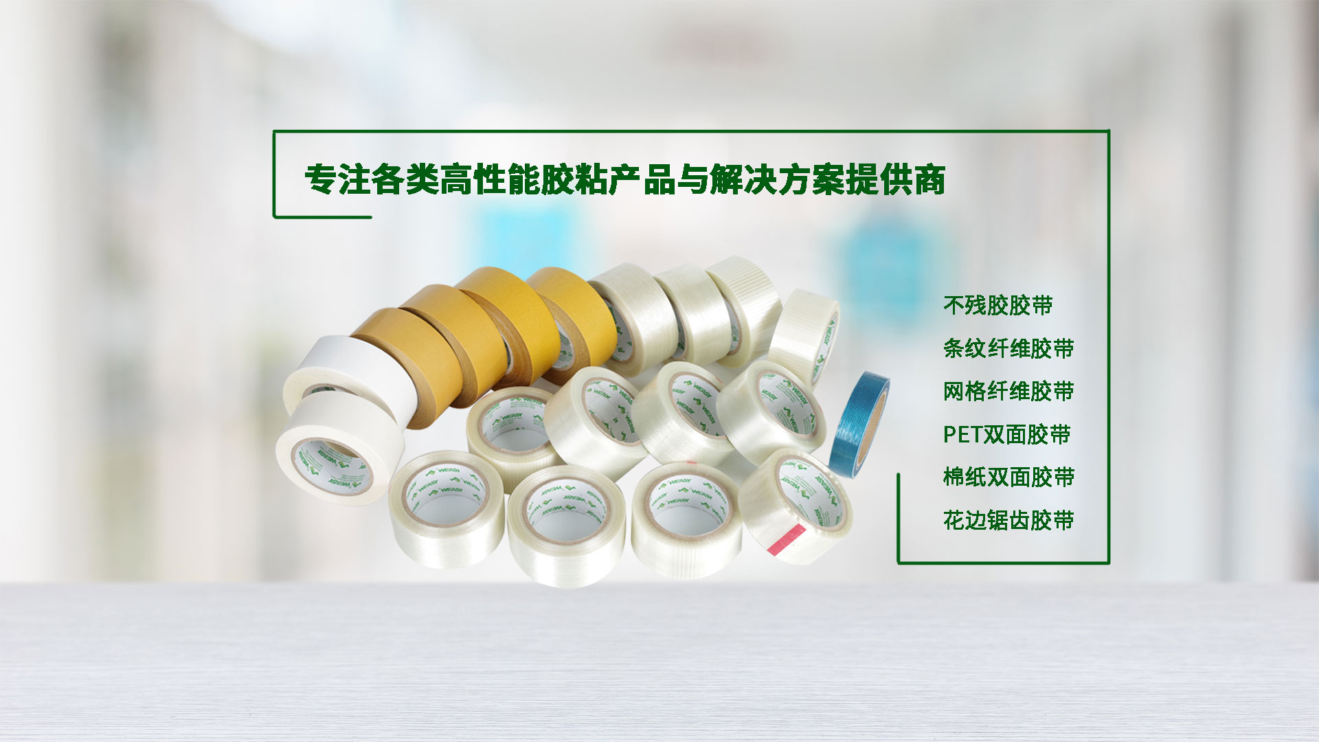 • 為客戶(hù)提供高質(zhì)量的膠粘帶,解決行業(yè)多年的難題,如:門(mén)窗密封,箱包制造的粘貼。