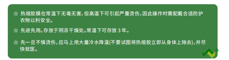 您的位置:首頁(yè) > 產(chǎn)品展示 > 熱熔膠膜 < > 熱熔膠膜 品牌:偉一 產(chǎn)品型號(hào): M45 基材: 膠粘劑類(lèi)型: 顏色:透明 厚度: 產(chǎn)品詳情 PRODUCT DETAILS 產(chǎn)品詳情 應(yīng)用行業(yè) 資料下載 M45是一種環(huán)保型,高性能的熱熔膠膜, 可廣泛而持久地粘接多種塑料,紡織物和金屬部件等難粘材料,粘接效果優(yōu)異,粘接強(qiáng)度高,粘接后的部件可適應(yīng)較為寬廣的溫度范圍。 因此,M45為電子電器等不同部件的組裝粘接及柔性難粘材料的復(fù)合粘貼提供了簡(jiǎn)便,快捷,可靠的解決方案。 M系列高性能膠膜品種齊全,可以滿(mǎn)足不同要求的應(yīng)用,同時(shí),還可根據(jù)客戶(hù)需求在此基礎(chǔ)上開(kāi)發(fā)定制產(chǎn)品。 特別適?于?屬與塑料材料之間的粘接,對(duì)各類(lèi)紡織物、?屬、??、塑料、陶瓷、?材、玻璃都有 極佳的粘接效果。?泛應(yīng)?在服裝?業(yè)的貼花、標(biāo)貼,汽??業(yè)的內(nèi)飾件,電??業(yè),包裝?業(yè), 通信?業(yè)等。