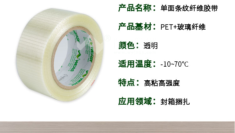 纖維膠帶主要特點:塑料纖維強化背材,張力強度極高,具備高度的耐磨損性能及抗潮濕使用性能,具備強拉力,抗摩擦,不容易斷裂,粘力極強,包裝功效很好且不容易脫落。特有的壓敏膠層具有優(yōu)異的持久粘力和特殊性能,可以滿足各種不同的使用需求。