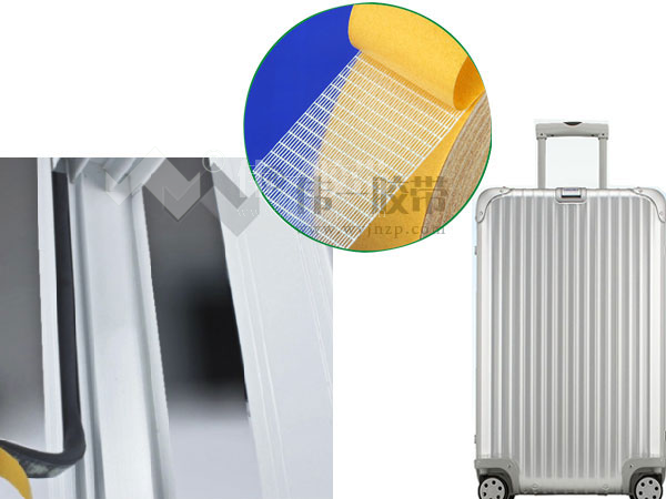 常見的纖維膠帶有條紋和網(wǎng)格之分,其中條紋纖維膠帶大多都是制成單面的,網(wǎng)格纖維膠帶則可以制成單面和雙面。單面條紋纖維膠帶與網(wǎng)格纖維膠帶多用于重物的包裝、捆扎和固定,雙面的網(wǎng)格纖維膠帶目前有應(yīng)用在門窗密封條行業(yè)(纖維膠帶兩面涂上特殊的高強(qiáng)度膠水)。