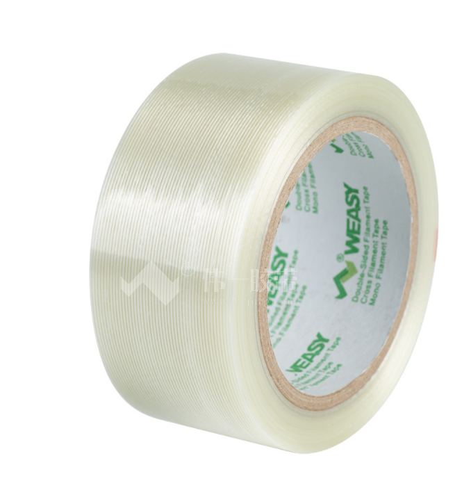纖維膠帶是以聚酯薄膜為基材,內(nèi)有增強的玻璃纖維線或聚酯纖維編織物,涂布壓敏型膠粘劑加工制作而成的膠粘帶制品。相比于傳統(tǒng)膠帶,纖維膠帶具備很強的斷裂強度,即便膠帶邊沿被破壞,膠帶也不會出現(xiàn)斷裂。所以,應(yīng)用纖維膠帶捆扎物品對比別的捆扎方式,高強度膠帶本身的強度和粘性,確保能夠在長時間或者長距離運輸過程中持續(xù)保持穩(wěn)固。